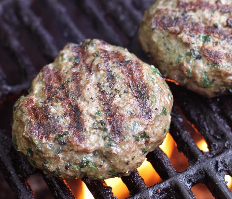 Place the parsley, mint, and garlic in a food processor and chop until fine. Place all ingredients in a bowl and mix thoroughly. Form into 4 patties.